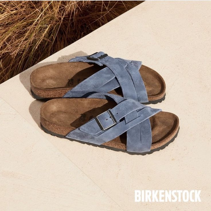 Step into everyday luxury with Birkenstock's blue suede cross-strap sandals. Designed for both comfort and style, these sandals feature a contoured cork footbed that molds to your foot and soft suede straps with adjustable buckles for a personalized fit. The earthy tones and minimalist design make them perfect for laid-back summer days or stylish city strolls. Experience the signature Birkenstock support in a look that never goes out of fashion.