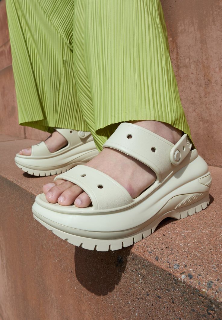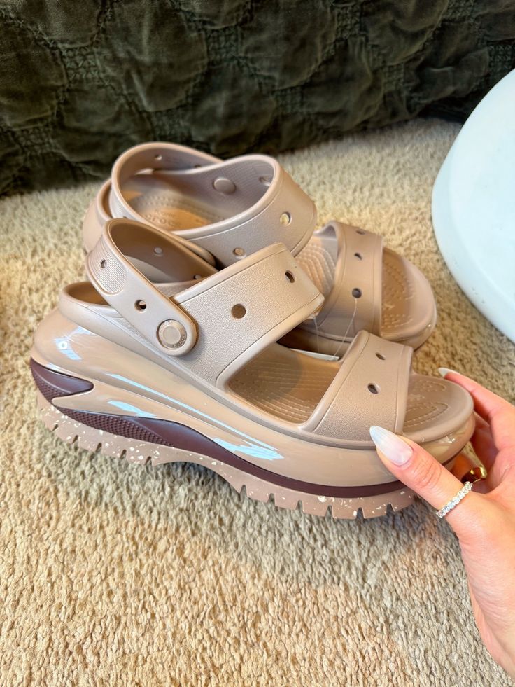 Step up your style game with Crocs Mega Crush Platform Sandals in a chic Latte shade. These statement-makers feature a bold, chunky sole that delivers added height without sacrificing comfort. Lightweight, durable, and incredibly easy to wear, they include secure adjustable straps and signature Crocs cushioning for all-day support. The neutral Latte tone pairs effortlessly with any outfit, making them a versatile addition to your wardrobe. Perfect for trendsetters who love comfort with an edge—these platforms are made to stand out.