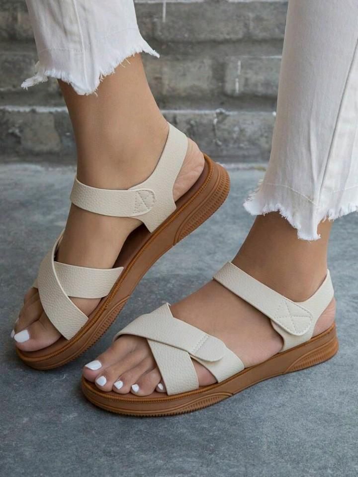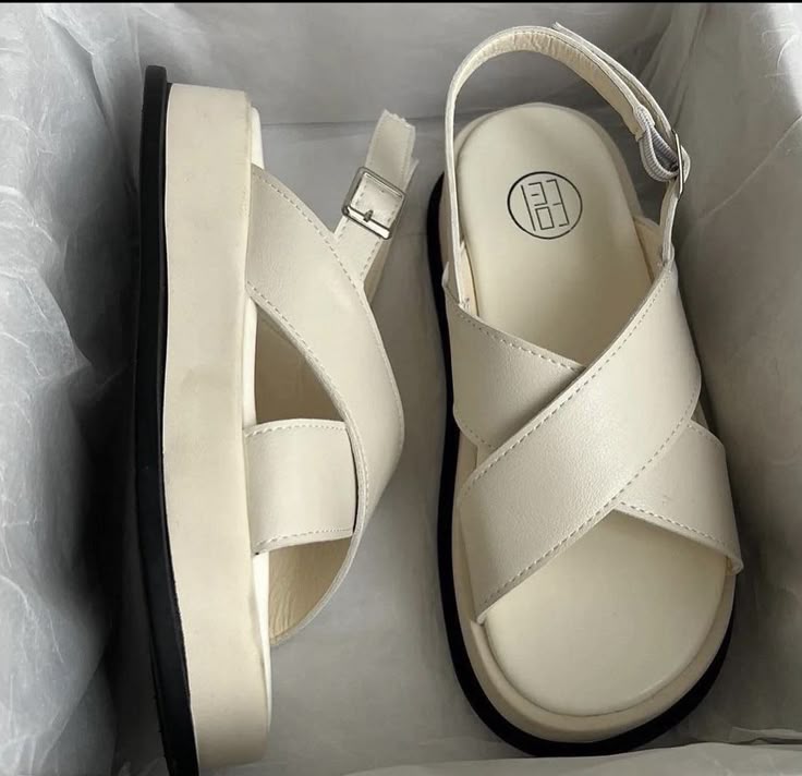 Discover the perfect balance of fashion and function with these sleek white cross-strap platform sandals. Designed with wide crisscross straps, a comfortable cushioned footbed, and an adjustable slingback buckle, these sandals offer both security and sophistication. The contrasting black sole adds a bold edge, making them ideal for minimalist wardrobes with a modern twist. Whether you're dressing up a casual outfit or completing a summer ensemble, these sandals provide effortless chic with all-day comfort.